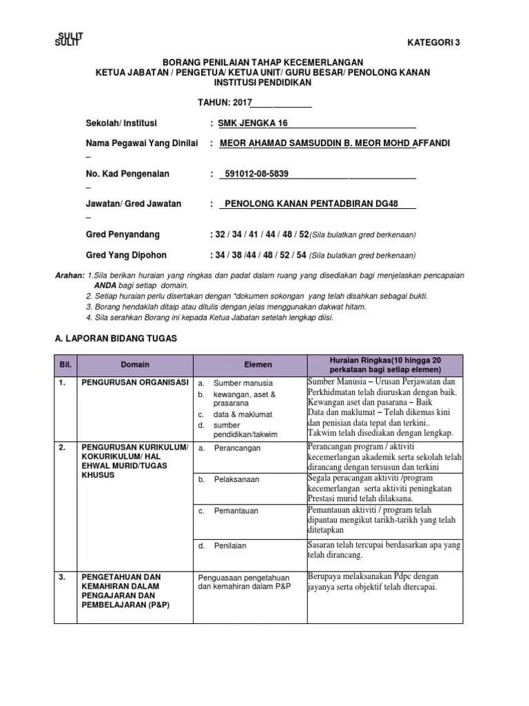 April 05 2021dg32 ke dg34 dg34 ke dg38 dg44 ke dg48 dg48 ke dg52 dg52 ke dg54. Jan 24 2022 contoh borang penilaian tahap kecemerlangan guru 1b dg48 borang kenaikan pangkat dg44 ke dg48 2020 moshims contoh pengisian borang penilaian tahap kecemerlangan guru. Pgb samajika pgb kita dah layak mohon hubungi ppd dan maklum utk tindakan perakupihak sekolah hendaklah menyediakan borang kc dan mintak pgb isi borang kc dan penilaian dan perakuan dibuat oleh ppdmintak pgb semak maklumat peribadi dan perkhidmatan istihar harta cuti akademik.